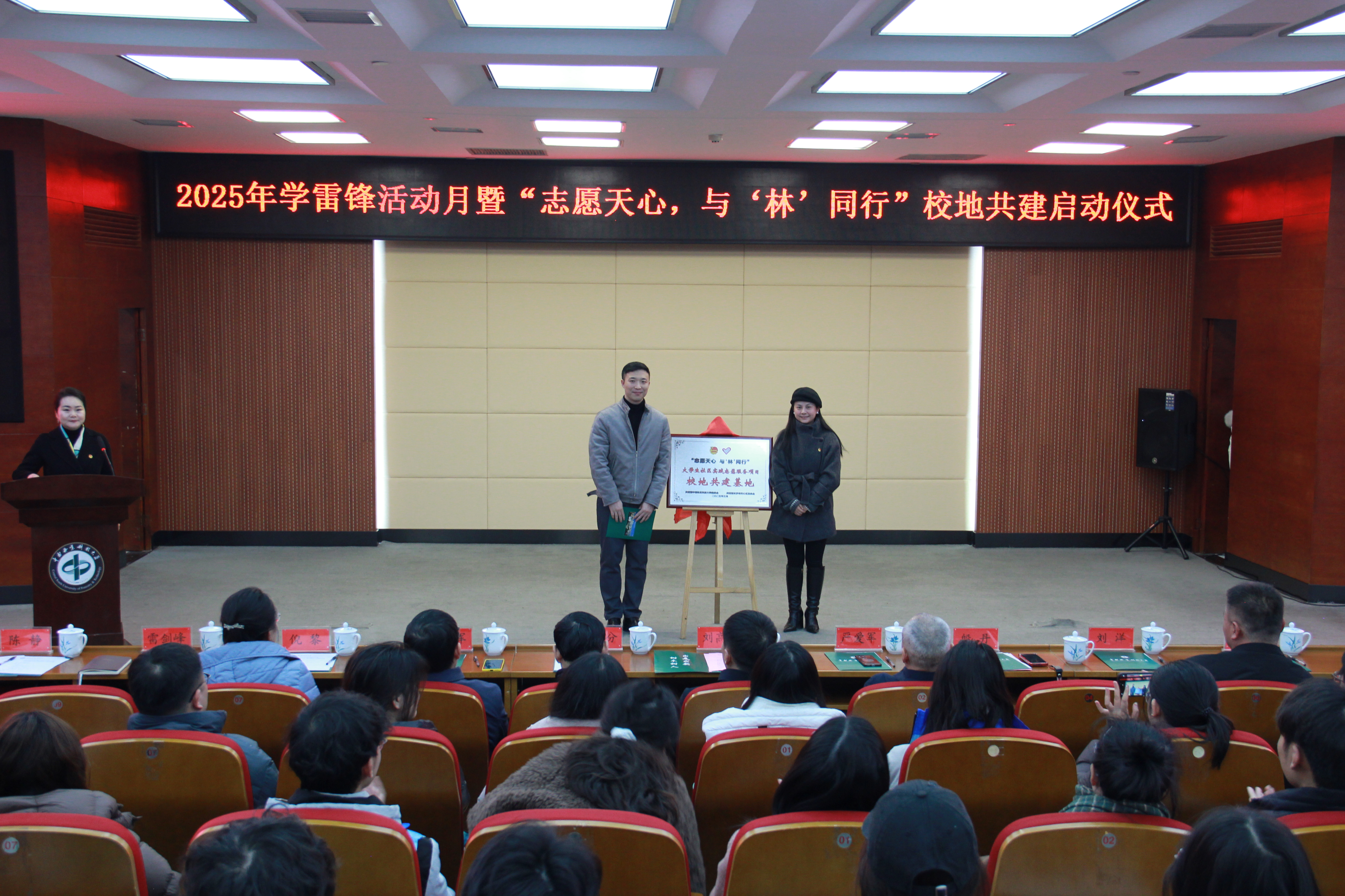▲学校举行学雷锋活动月暨“志愿天心 与‘林’同行”校地共建启动仪式