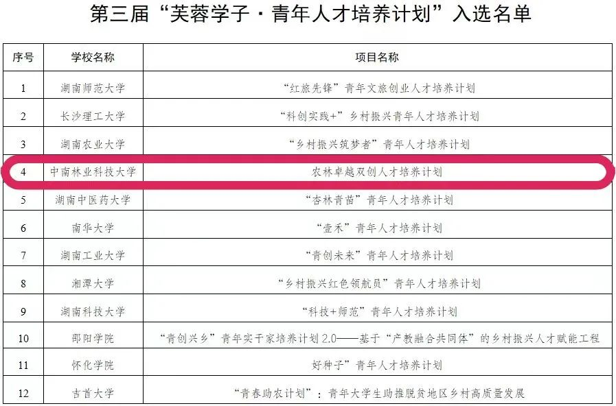 我校材料与能源学院申报的“农林卓越双创人才培养计划”,成功入选第三届“芙蓉学子·青年人才培养计划”项目实施高校,获得10万元的经费支持,用于培养创新创业、乡村振兴领域人才。