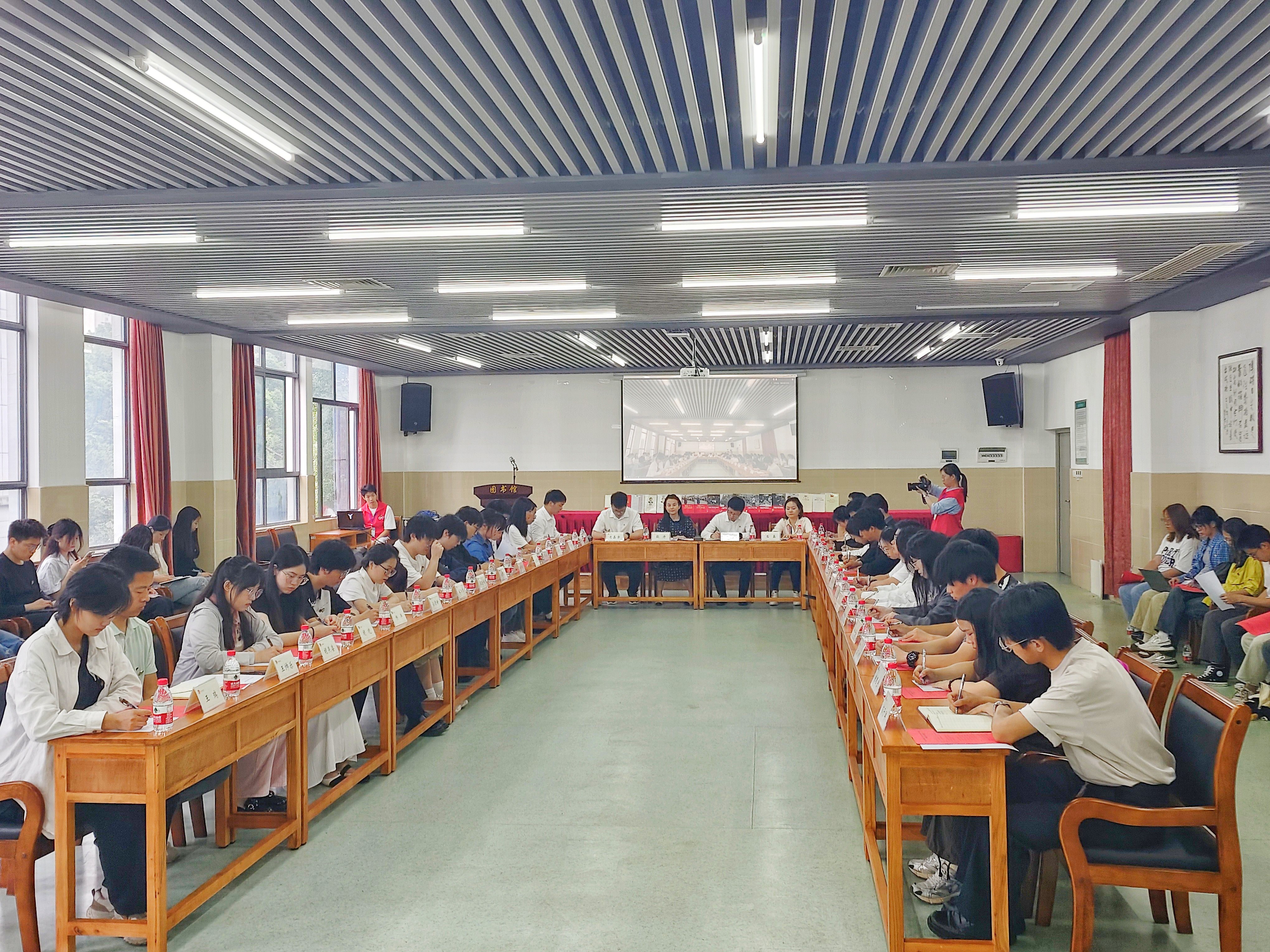 湖南省学联驻会执行主席李熙城同学领学了习近平总书记五四重要寄语精神、习近平总书记对学校思政课建设重要指示精神、习近平总书记考察湖南重要讲话和指示精神、沈晓明同志在湖南省五四青年座谈会上的讲话精神。来自湘潭市学联、中南林业科技大学学生会、中南大学研究生会、湖南大学研究生会、湖南师范大学学生会、南华大学学生会、中南林业科技大学三秋文学社、湖南科技大学学生会、湖南理工学院学生会、衡阳师范学院国学社的10名学生代表,围绕《习近平与大学生朋友们》(第二卷)等书籍,分享了读书体会。