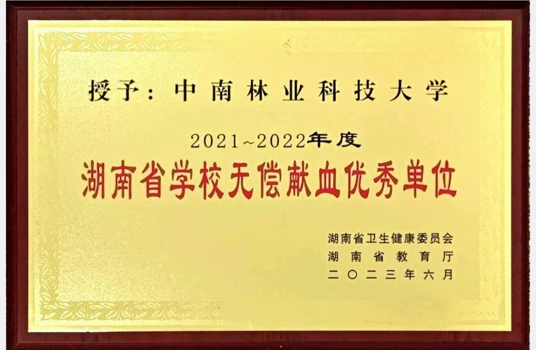 近日,湖南省卫生健康委、湖南省教育厅联合下发《关于2021-2022年度全省学校无偿献血表现优秀单位和个人的通报》,表彰了我省在无偿献血方面作出重要贡献的单位和个人。我校荣获“湖南省学校无偿献血先进单位”荣誉称号。其中,2名老师荣获“2021-2022年度湖南省学校无偿献血优秀组织者”,38人获评“2021-2022年度湖南省高校无偿献血先进个人”。