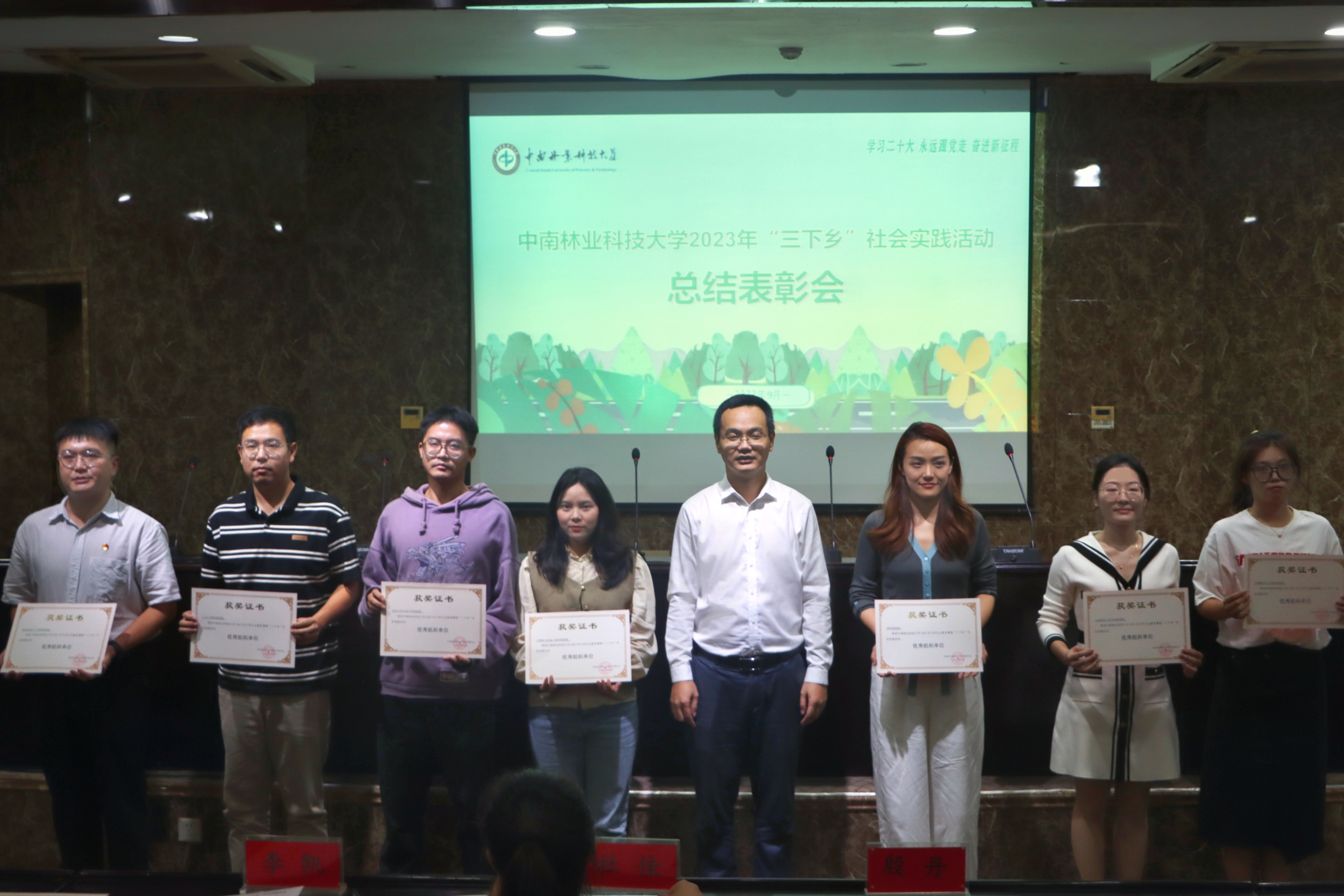 会议进行了2023年大学生暑期“三下乡”社会实践活动工作总结,宣读了《2023年大学生暑期“三下乡”社会实践活动表彰决定》,与会领导为获奖集体与个人颁奖,生命科学与技术学院等7个分团委获得优秀组织单位,“林学院赴金紫村‘青春献礼二十大 杨帆奋进新征程’——留守学生心理帮扶教育关爱服务社会实践团”等22支团队获得优秀团队;谌晶晶等22名老师获得优秀指导老师;陈家满等55名同学获得优秀个人。
