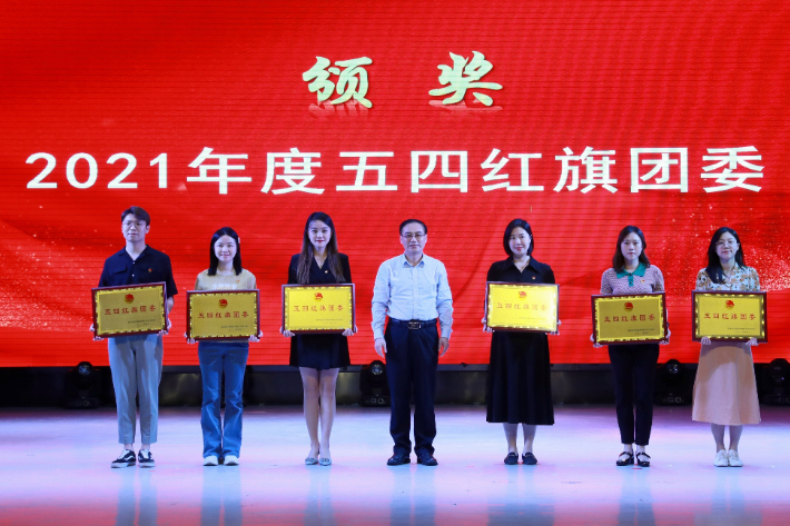会上,举行了庄重的新团员入团仪式。校团委书记李凯作2021年度共青团工作报告,殷丹宣读了《关于2021年度共青团工作先进集体和先进个人表彰的决定》。与会领导分别为“优秀抗疫志愿者”“十佳大学生志愿者”“十佳大学生社团”“优秀社团指导老师”“共青团先进工作者”、校“五四红旗团支部”以及“五四红旗团委”等颁奖。