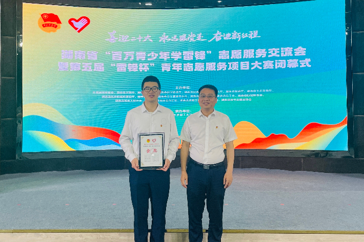 5月26日,由团省委牵头举办的湖南省“百万青少年学雷锋”志愿服务交流会暨第五届“雷锋杯”青年志愿服务项目大赛在湖南省青少年活动中心落幕。我校斩获金奖1项、银奖2项、铜奖1项。其中《园艺养心——大学生负性情绪改善志愿服务》(指导老师:李思婷、袁红梅、王小凤)荣获心理健康组金奖,《行走的环教课堂》(指导老师:李凯、袁杨)荣获生态环境保护组银奖,《爱水护水青年行——湘江净滩活动》(指导老师:殷丹、蔡思琴)荣获节水护水与河小青专项组银奖,《唱响社区幸福歌——长沙市老年人文化服务计划》(指导老师:邓集勋)荣获社区治理与邻里守望组铜奖。