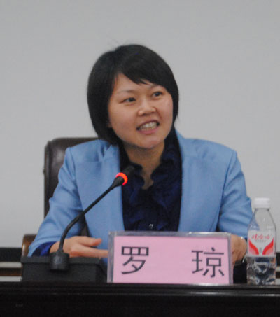 随后,团省委副书记罗琼发表讲话,她首先传达了2012年全国学校共青团工作会议和省第十四次团代会等上级党团组织会议精神。她指出,今后五年,全省各级共青团组织要紧紧围绕“四化两型”建设,以实现“两个全体青年”为目标,切实履行团的四项基本职能,不断提高新形势下青年群众工作的能力和水平,团结带领全省广大团员青年务实奋进,争创一流,为实现“两个加快”目标贡献青春、智慧和力量。罗琼副书记还就如何开展高校共青团工作方面提出了具体要求,她首先对我校共青团在品牌社团建设、校地团建合作为学生提供广阔实践锻炼舞台、组织学生创新学雷锋活动、组织学生开展服务基层农林建设、生态环保、“四化两型”和“绿色湖南”建设等体现林大学科和专业优势的活动、运用腾讯微博加强团组织基层建设、关注青年教师、在选拔团学干部时注意关注来自农村、少数民族和困难群体的学生等方面的思路和取得的成效予以充分肯定。罗书记强调,省内各高校要团结和带领广大青年学生和青年教职工,充分发挥他们在学校建设中的生力军作用,加大对他们的思想教育和引领,要切实为他们的成长和成才服务,要切实维护好青年学生的合法权益,要下大力气抓好团学组织的自身建设。同时,她还勉励高校共青团干部和青年学生务必要加强学习,不断提高自主学习能力、领导能力和社会实践能力,以高度的政治意识和使命意识扎实做好工作。