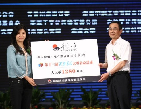 启动仪式上,李曙光代表湖南中烟工业有限责任公司向第十三届“芙蓉学子”大型公益活动捐赠1280万元,冯海燕代表实施机构向湖南中烟工业有限责任公司颁发了捐赠荣誉纪念牌。