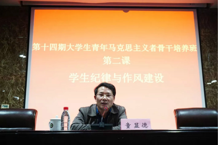 12月4日晚,我校第十四期大学生青年马克思主义者骨干培养班第二课在图书馆报告厅举行。学校纪委副书记童显德以“学生纪律与作风”为题,给学员们上了一堂内容丰富,见解深刻的课程。
