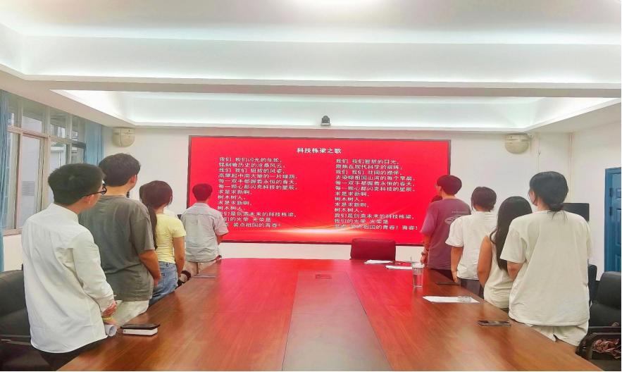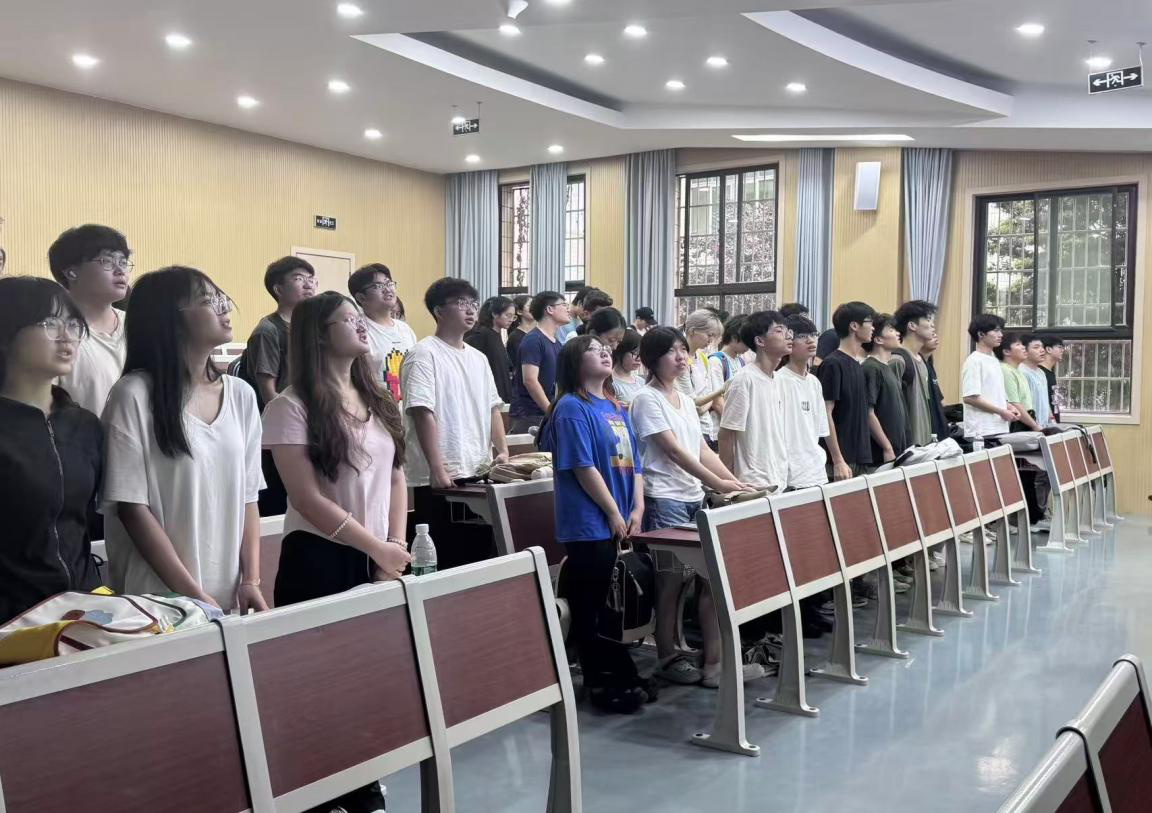 各团支部从两个维度深化教育成效:一是以国歌为引,团员们整齐列队,齐声高唱国歌,在激昂的旋律中,大家精神饱满,歌声嘹亮,随后,以国歌中“中华民族到了最危险的时候”这句歌词为切入点,团支书深入阐释居安思危的忧患意识,让大家深刻认识到国家安全与个人息息相关;二是以校歌铸魂,通过校歌传唱厚植文化根基,以文化认同为纽带,夯实国家安全的思想根基,各团支部齐唱校歌,通过集体仪式感激活身份认同,校歌中“奉献”“奋斗”等歌词与国家安全责任形成共振。团员青年在合唱中,将居安思危意识扎根心间,萌生出实际行动的新芽,把爱校爱国情感升华为担当,筑牢思想防线,传承守护家国的使命。