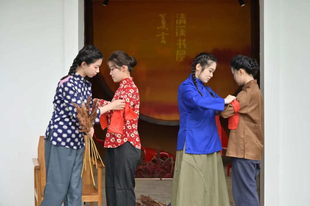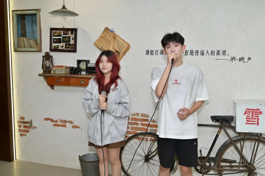 活动中,学生们还根据景点特色穿插了多场文艺展演。在梁晓声书屋,学生深情演绎了《人世间》对唱和古筝、二胡连奏《渔舟唱晚》,声画结合,致敬经典;在莫言书屋,沉浸式短剧《红绸乱》与二胡、葫芦丝连奏《九儿》的精彩演绎,则生动再现了文学作品的澎湃张力。