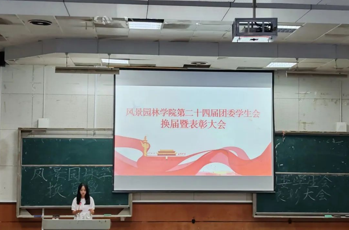 风景园林学院第二十四届团委学生会换届暨表彰大会于2023年10月20日19:00在生科楼002教室举行。学院党委副书记刘智娟、团委书记王清扬、常务副书记廖一丹,指导老师王明佳出席本次会议,第二十三、二十四届团委学生会全体成员以及新生代班参与此次会议。