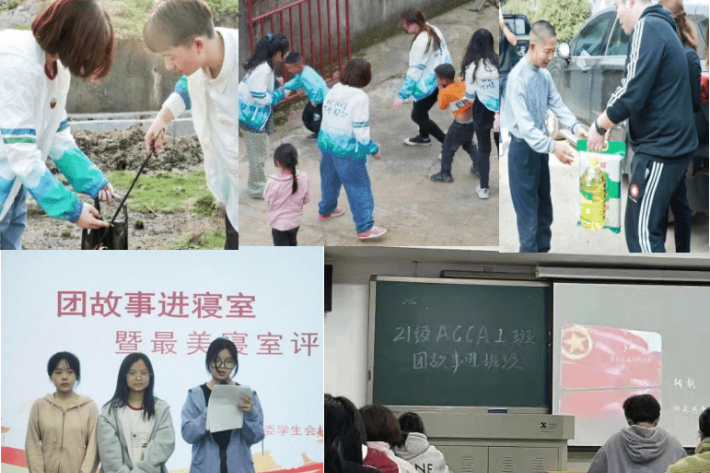 “团的故事进班级”分别从共青团的成立、发展、成长、展望未来四个方面展开,利用课间的时间讲述团的故事,传播共青团精神;“团的故事进寝室”以寝室为单位,讲述着各自家乡的红色故事,用他们的青春表达的对祖国的热爱和正确的价值观。