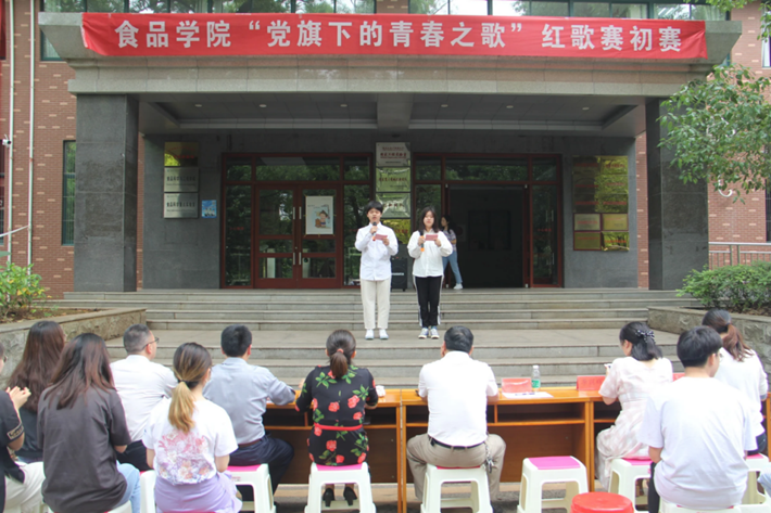伟大历程璀璨如画,光辉岁月悠久如歌。青春向党,献礼百年,为了推动党史学习教育走深走实,2021年5月14日12:20,我院2019级、2020级本科生以及研究生党支部于学院楼(神农楼)前坪举行了党史教育系列之“党旗下的青春之歌”红歌赛初赛。党委书记李婷,党委副书记潘晓杰,党支部的各位书记付湘晋、李旺、李丽辉、陆俊、邓颖、谭智源,分团委书记刘宇及团委学生会主席团的部分成员出席了本次比赛。