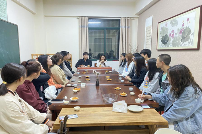 最后,参加活动的同学和老师们进行了简短的自我介绍。在主持人的带领下,大家积极参加了“成语反说”小游戏,游戏内容丰富有趣,一时间欢乐充盈在茶室之中。之后,主持人为本次活动作简要总结。至此,“树班级新风 开广阔新局”五月雅集活动圆满结束。