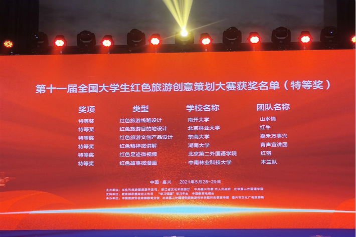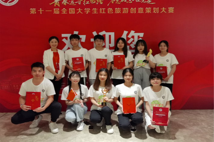 在总决赛中,由杨芳老师指导,旅游学院2019级贺娟琴、罗清妹、金晓燕、陈子懿、李敏组成的“木兰队”,以作品《百年巾帼·红》获得红色故事微漫画特等奖;由张清老师指导,旅游学院2019级秦若萱、向智、秦映华、周晨辉、许驰组成的“星火队”以作品《百年红船,南湖启航》获得红色旅游线路设计一等奖。我校还获得全国“优秀组织奖”1项,全国“优秀指导教师奖”2项。