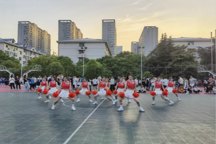 中场休息,我院啦啦队上场,为运动员和观众们带来了精彩的舞蹈,用实际行动为运动员加油、鼓励。