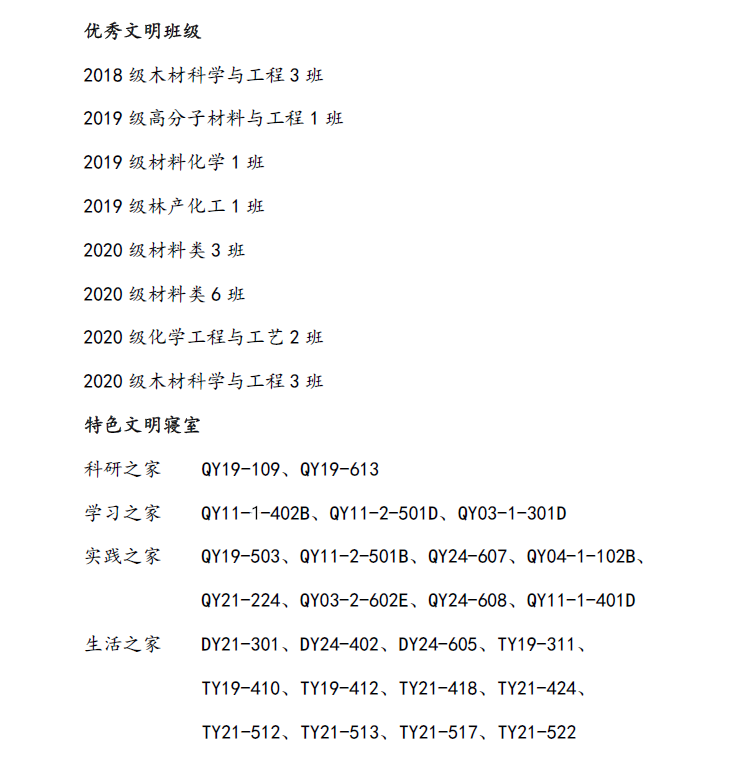 最终根据《文明班级评比标准》、《文明寝室评分标准》,在评比委员会小组讨论下,选出9个文明班级,25个文明寝室,现将结果公布如下: