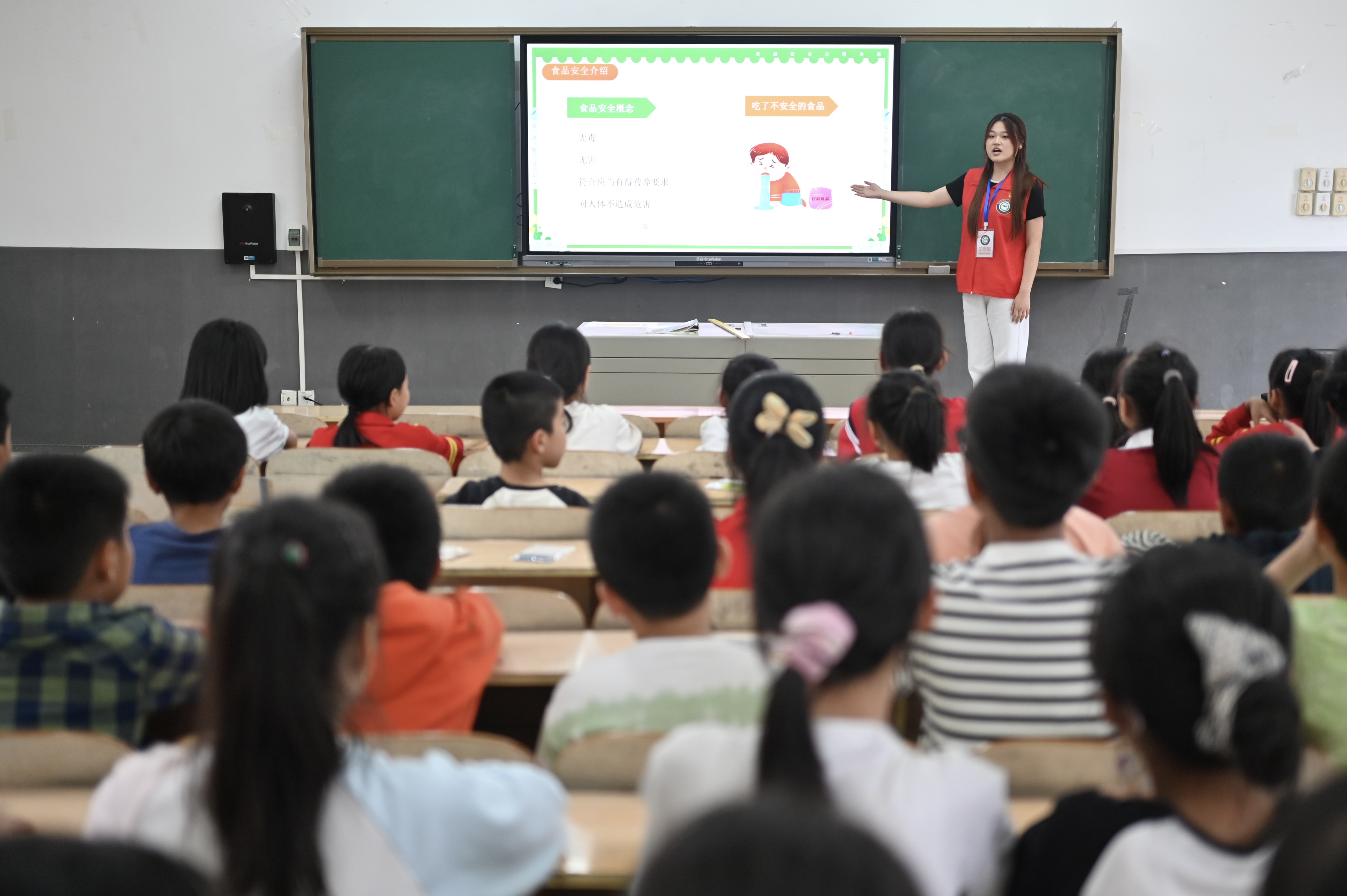 5月15日,中南林业科技大学食品科学与工程学院“食话食说”居民膳食大健康中国行科技服务团走进平江县福寿山镇益海小学,为小学生带来一场别开生面的科普教育活动。活动紧扣《中国居民膳食指南(2022)》、《体重管理指导原则(2024年版)》及近期国家市场监管总局关于加强校园食品安全管理的号召,通过多元化互动形式,助力小学生树立科学饮食观念。