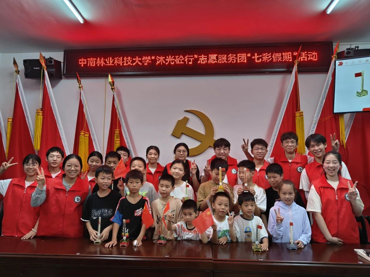 除了助力文旅,“沐光砼行”团队还十分关注乡村儿童的成长教育。在“七彩假期”活动中,团队累计服务600余人次,为当地孩童精心准备了丰富多样的支教课程。课程围绕“赤橙黄绿青蓝紫”七个主题,采用“小游戏+知识介绍”的创新教学方式,内容涵盖党团知识、思想引领、非遗传承、建筑手工、心理健康、文艺体育、校园安全等多个领域,让孩子们在轻松愉快的氛围中收获知识、茁壮成长。