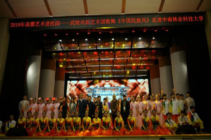 11月7日晚, 2019年高雅艺术进校园——湖南文理学院“武陵风韵”艺术团“中国民族风”高校巡演在我校雅韵堂举行。演出由教育部、文化和旅游部、财政部联合举办。湖南文理学院党委副书记龚卫明、中南林业科技大学党委副书记秦立春、湖南文理学院党委宣传部常务副部长覃佐媛、中南林业科技大学党委宣传部部长李凯出席活动,与我校600余名师生共同观看了这场高水平艺术团表演。